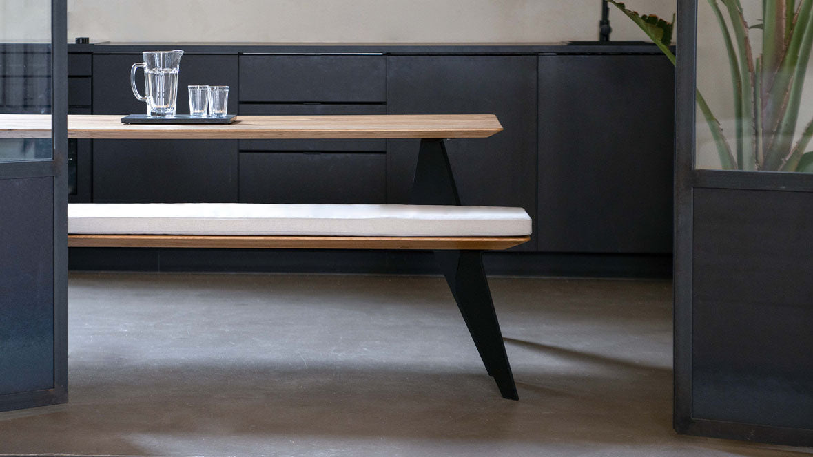 Both classic wooden chairs and modern models with metal frames or upholstered seating go well with a solid wooden table. One House offers a large selection of chairs with sustainable fabric covers that combine seating comfort and design. Combine chairs, stools and benches for a versatile look in the dining room!