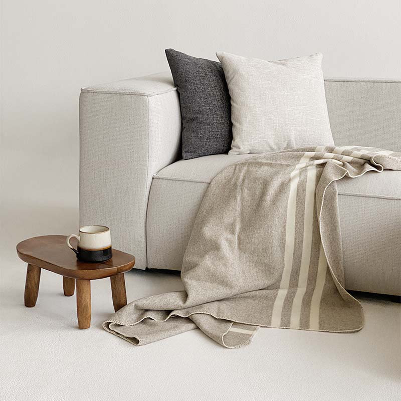 Die Inspiration für die Fryske Wolldecke stammt aus dem nördlichen Teil der Niederlande, in dem die Winter kalt und windig sind, eine frische Brise über das Meer an Land zieht und das Verlangen nach Gemütlichkeit zu Hause groß ist.